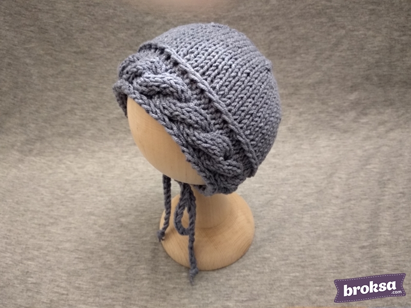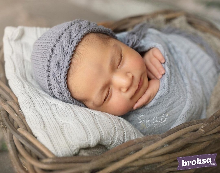 This interesting hat is knitted with soft cotton yarn. It has the shape of a bonnet, along the edge of the hat is a beautiful embossed pattern in the form of a braid. It will be a great fit for boys and girls up to two weeks old.