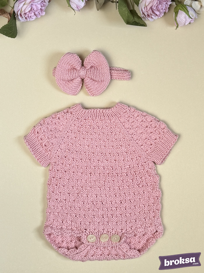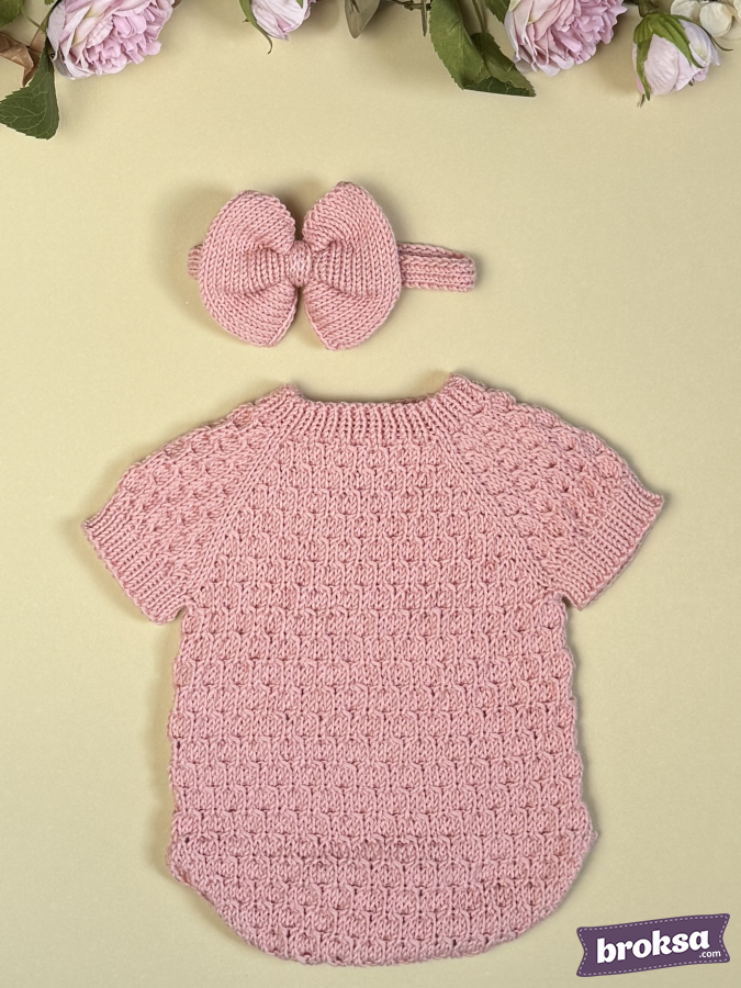 I offer a delicate knitted set for a reborn doll: a short‑sleeve bodysuit and a headband with a large bow. Color: dusty pink, with a voluminous, soft texture. The fit is perfect thanks to raglan construction and elastic edges, and the silhouette looks clean and neat. Attention to detail in everything: even edges, a pattern without distortion, tone‑on‑tone buttons for easy changing.