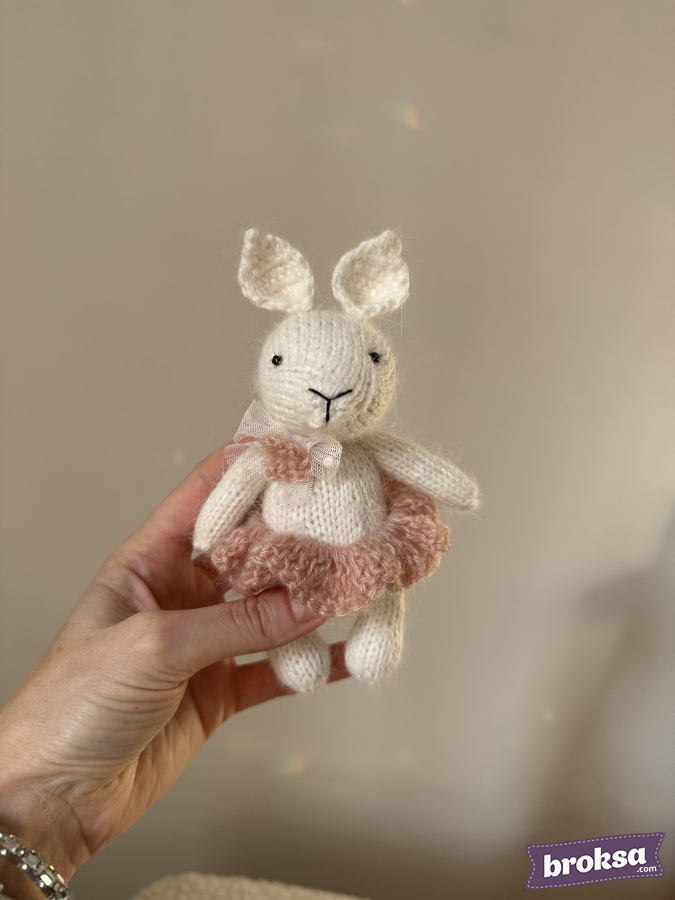 For your shots, I offer a delicate knitted bunny in a fluffy pink tutu. Milky shade, soft texture, eyes embroidered with beads. The perfect height for close-ups and little hands. The prop adds delicacy to photos of reborn dolls and newborns.