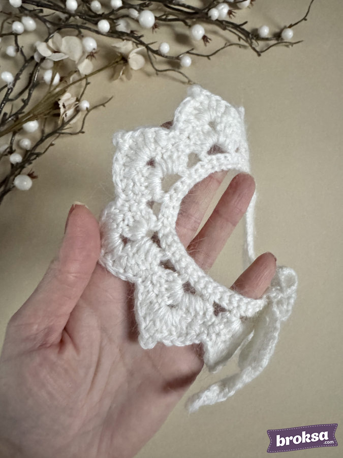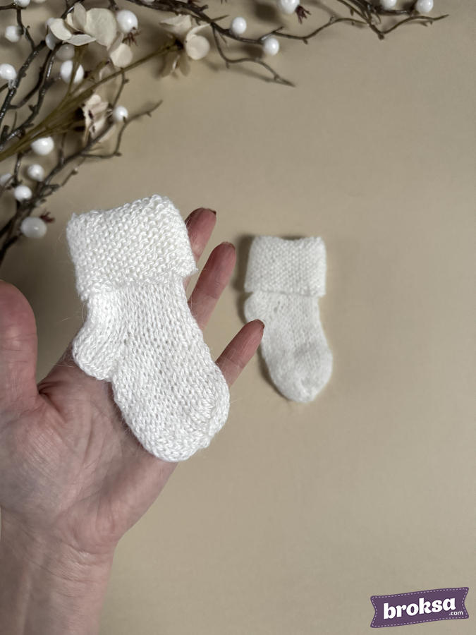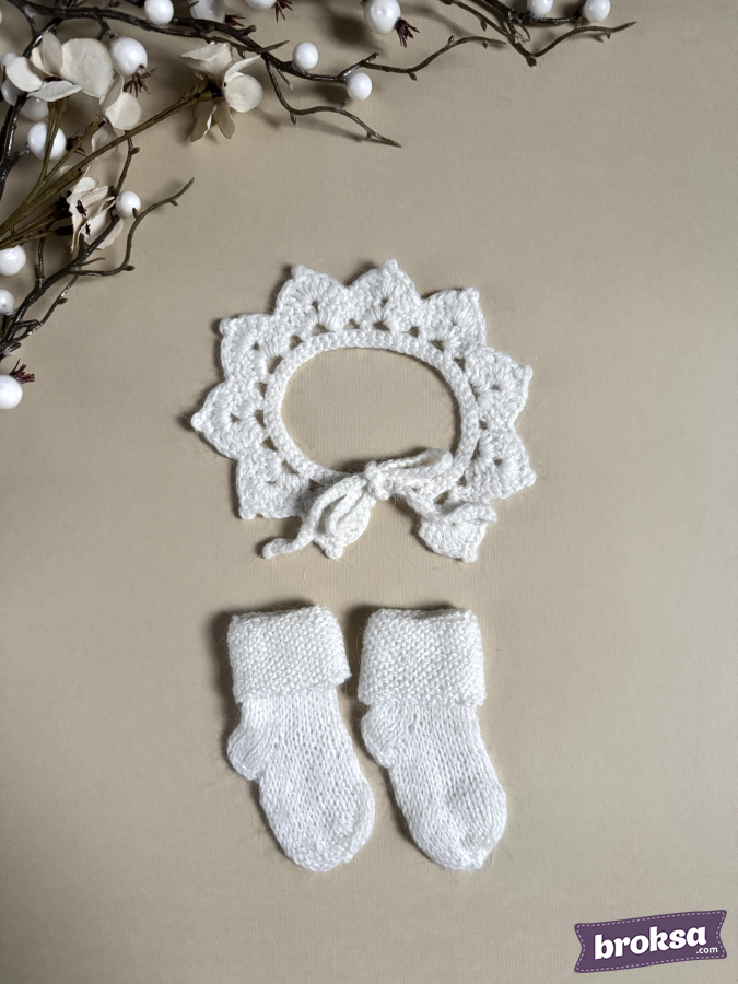 In my workshop, I have created a delicate white set for a reborn doll: a lace collar with ties and knitted socks with a fold-over cuff. Made from a soft wool-blend yarn that feels pleasant to the touch. Careful attention to detail in the even edges, crisp scallops, and neat shape.